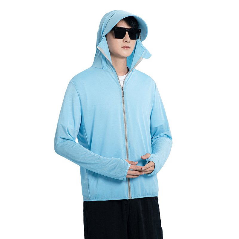 เสื้อกันแดดใส่ไปกลางแจ้ง ใส่ได้ทั้งผู้ชายและผู้หญิง ผ้าไหมเย็น หมวกถอดได้กัน