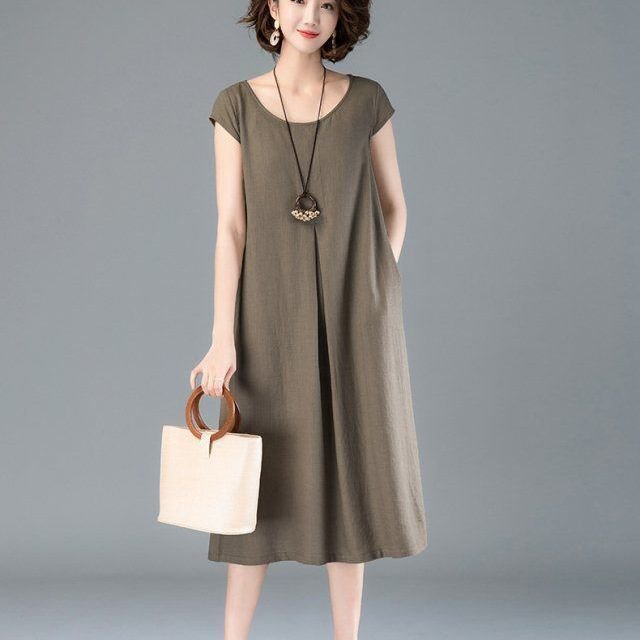 กระโปรงยาวปานกลาง ผ้าฝ้ายลินินทรงหลวม
