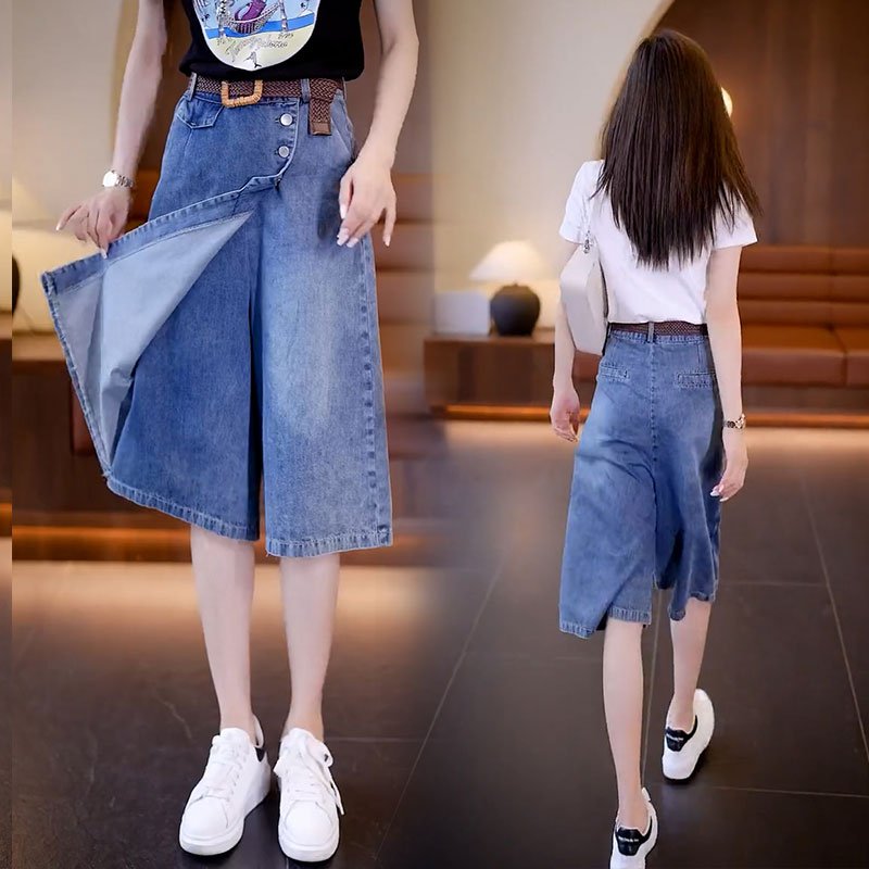 กางเกงกระโปรงยีนส์ แบบยาวคลุมเข่า สุดฮิต